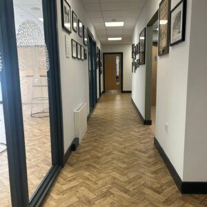 The project commenced with a full soft strip demolition of existing plasterboard partitions, floor coverings, suspended ceiling tiles, and sanitary installations across both floors. The subsequent fit-out programme included the installation of new internal partitions, contemporary glazed screens, vinyl and carpet floor finishes, suspended ceiling systems, internal doors, fully refurbished WC facilities, and complete decoration throughout.